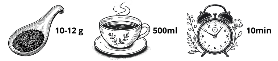 Dvě plné polévkové lžíce (cca 10–12 g) směsi zalijte 500 ml vody a nechte 10 minut vařit pod pokličkou, poté sceďte. Var je důležitý kvůli slzovce. Tato směs jde připravit i jako "druhák", kdy postupujete úplně stejně, jen vody bude o něco méně (cca 350 ml). Zelený čaj je jako „druhák“ často jemnější a chuťově vyváženější.