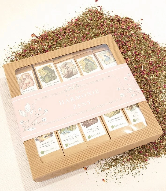 Jsou období, kdy se žena potřebuje na chvíli zastavit. Zpomalit, nadechnout se a znovu najít lehkost v těle i v hlavě. Právě pro takové chvíle vznikla tato dárková kolekce 10 miniatur našich bylinných čajů. Ne jako rychlé řešení, ale jako jemný průvodce dny, kdy je potřeba vrátit se blíž sama k sobě. Šálek po šálku, pomalu a s respektem k tomu, co si tělo právě žádá.