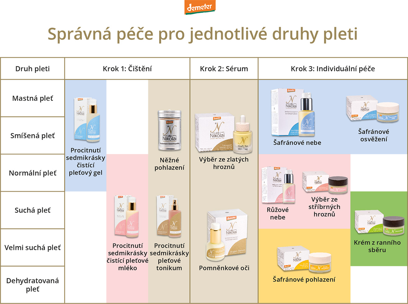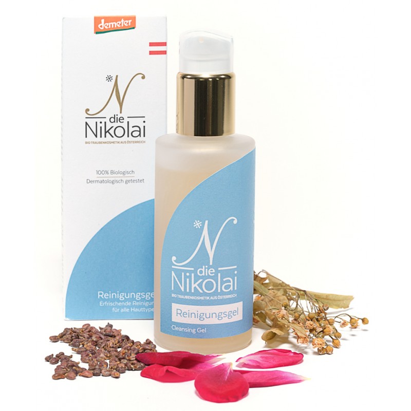 Čistící pleťový gel založený na bázi výluhu z lipových květů a hroznových slupek je určený pro všechny typy pleti. V kombinaci s vodou vytvoří na tváři příjemnou pěnu, která aktivně vyčistí pokožku od všech nečistot a nechá jí příjemně osvěženou. Po použití gelu je pokožka připravena na působení dalších přípravků z řady dieNikolai.