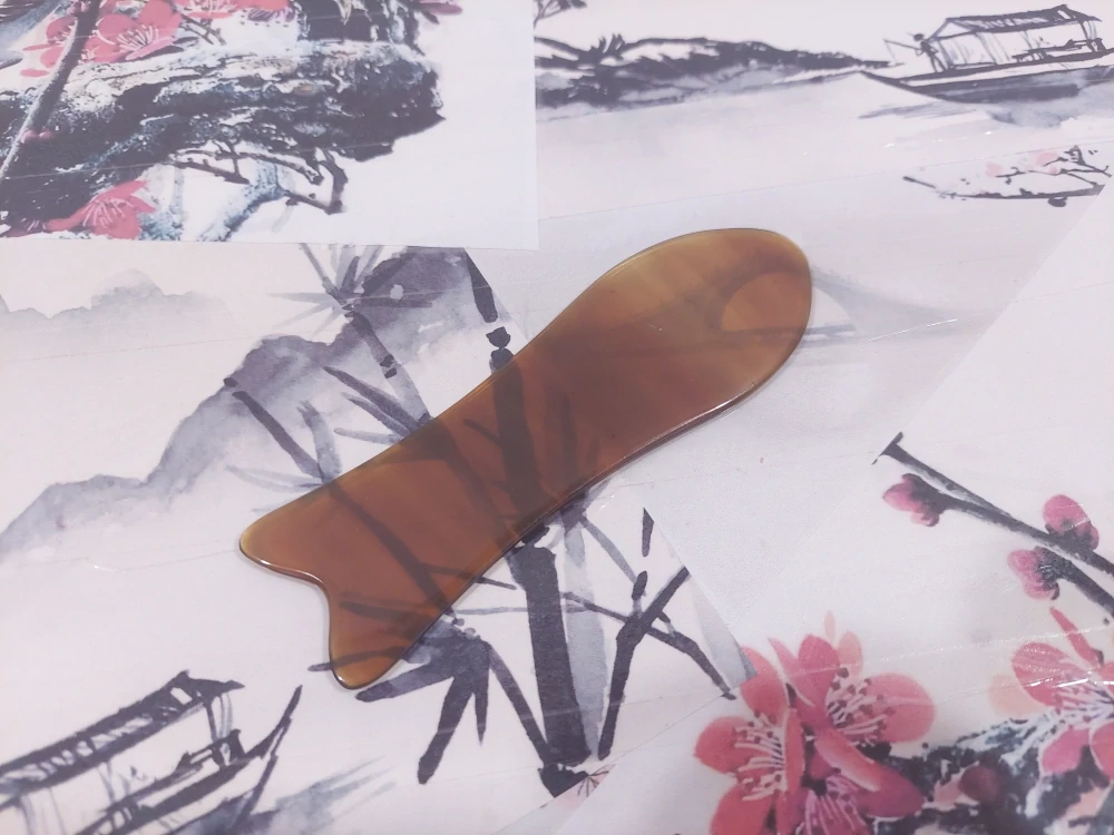 Guasha je tradiční masážní technika využívaná v čínské medicíně. Guasha destičky se vyrábějí z různých materiálů – rohoviny, pryskyřice, dřeva nebo luxusních kamenů, jako jsou jadeit a nefrit. Každý materiál má své specifické vlastnosti a využití. Tvar rybičky umožňuje jak široké tahy, tak precizní práci na menších plochách.