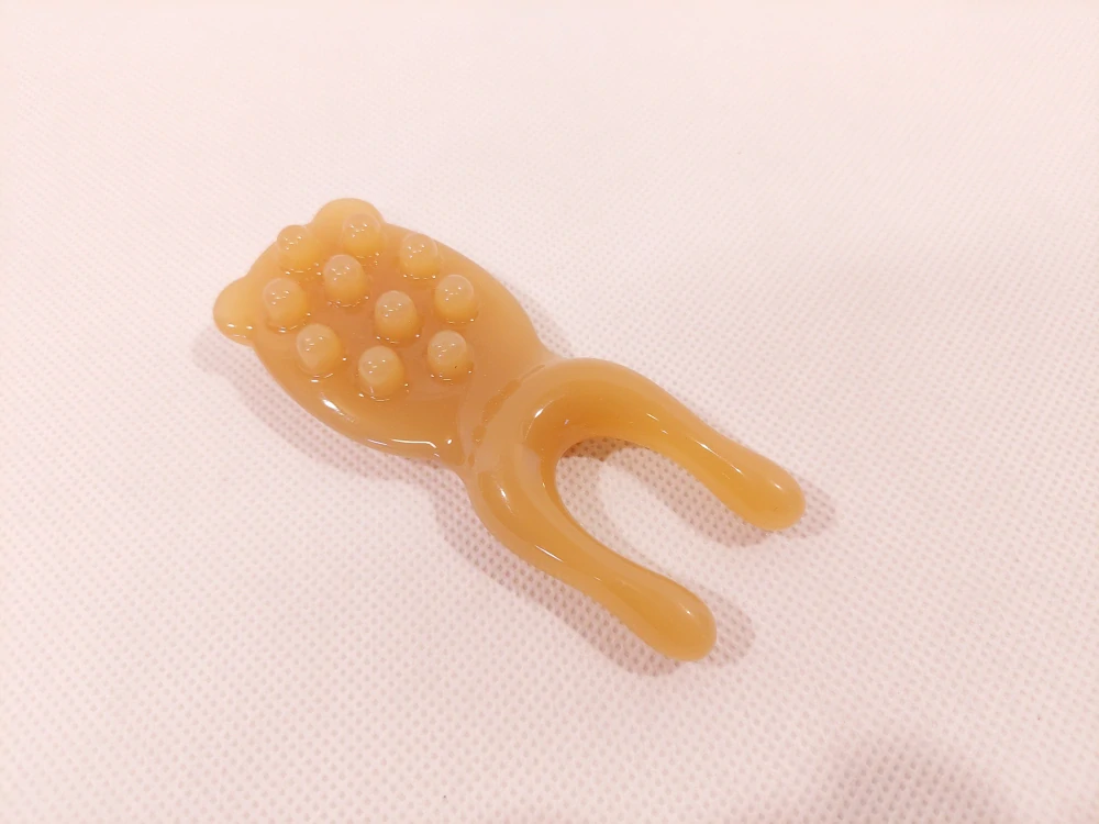 Unikátní masážní pomůcka "Nose Lifter" v elegantní hnědo-karamelové barvě z leštěné pryskyřice je navržena pro cílenou masáž obličeje a stimulaci nosní oblasti. Její ergonomický design umožňuje efektivní práci na svalech obličeje, podporu lymfatického systému a zlepšení prokrvení pokožky.