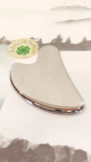 Na první dotek působí čistě, klidně… a přesně tak pracuje i na těle. Tato guasha z nerezové oceli je jiná než kamenné varianty – má výrazně hladší skluz, příjemně chladí a drží si svou teplotu. Díky tomu je ideální pro ranní rituály, otoky nebo chvíle, kdy potřebujete pleť i hlavu trochu „probrat“.