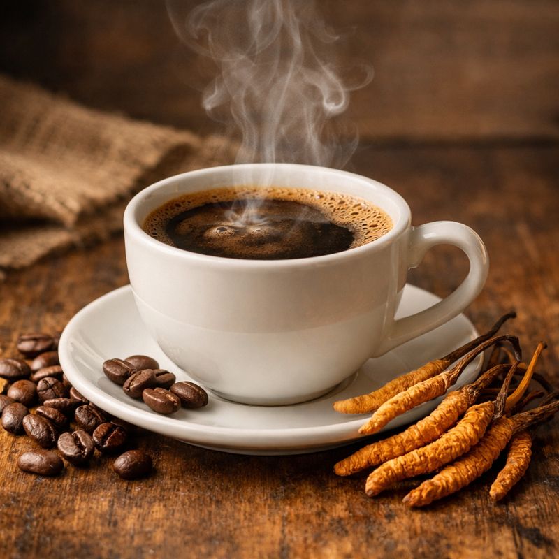 V šálku dělá cordyceps něco příjemně nenápadného: zjemní hrany. Neutlumí kávu, jen ji posune – chuťově do teplejší, kulatější polohy a pocitově do „delšího tahu“. Kofeinový efekt dělá kofein, takže hlavně káva. Cordyceps není stimulant. Do nápoje přidává spíš prvek vytrvalosti a stability – takové to „jedu, ale nejsem rozházená“.