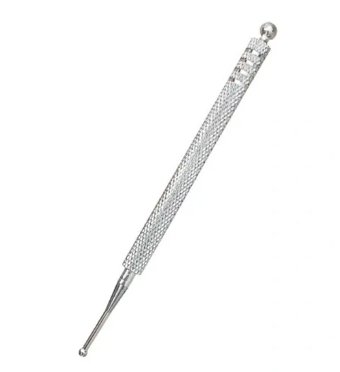 - Dvoustupňové zakončení: Jedna strana tyčinky je vybavena větší kuličkou, která je ideální pro větší plochy nebo méně citlivé body. Druhá strana s menší kuličkou umožňuje práci s jemnými body, například v oblasti nehtů nebo uší.